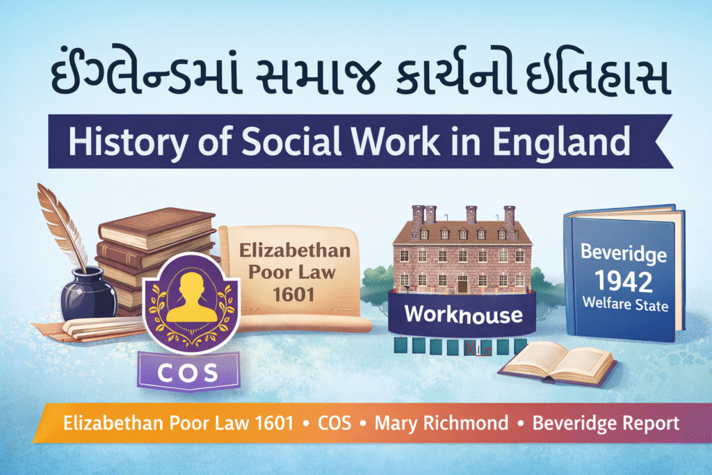 ઈંગ્લેન્ડમાં સમાજ કાર્યનો ઇતિહાસ પ્રસ્તાવના ઈંગ્લેન્ડમાં સમાજ કાર્યનો ઇતિહાસ માનવ કલ્યાણ, ગરીબી નિયંત્રણ અને રાજ્યની જવાબદારીના વિકાસ સાથે નિકટથી જોડાયેલો